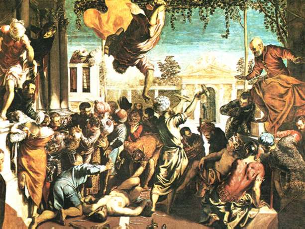 3. Jacopo Robusti (Il Tintoretto), "The fall of San Rocco's angel". Notice that the angel falls from heaven to succor a slave! Notice also, the sense of reality that emerges from the picture. All in perfect consonance with the trend to rebuff scholasticism and embrace empiricism.