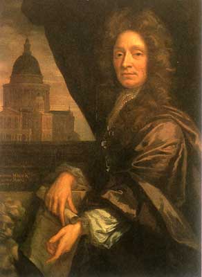 Wren is best known today at the architect for St Paul's Cathedral. We noted above that he was appointed as Surveyor of St Paul's Cathedral in 1669. His first design for the new cathedral was rejected by London City Council as not sufficiently grand and Wren produced a second plan together with a model in 1674. This second plan was based on a Greek design which was rejected by the clergy as not in keeping with the proper form of a Christian church. Wren, despite the tragedy in his personal life at this time and his great disappointment at the reaction to his plans for St Paul's, set to work again and produced a third design based on a Latin Cross with a large dome. This third design would form the basis for the plans for the Cathedral that we see today, but Wren modified them as the work progressed over a period of 35 years. As Wren was already 43 years old when the project began, he might not have been expected to live to see its completion. However, he lived to the age of 90, and St Paul's Cathedral was completed 12 years before his death.